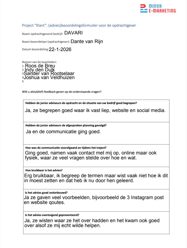 Na de vakantie zijn we gestart met het analyseren van een bedrijf. Ik keek vooral naar de website en social media en leerde hoe je kritisch kunt kijken naar online communicatie en verbeterpunten kunt herkennen. Ik begon dit project met meer vertrouwen dan aan het begin van de minor, omdat ik wist hoeveel ik al had geleerd en kon bijdragen.
